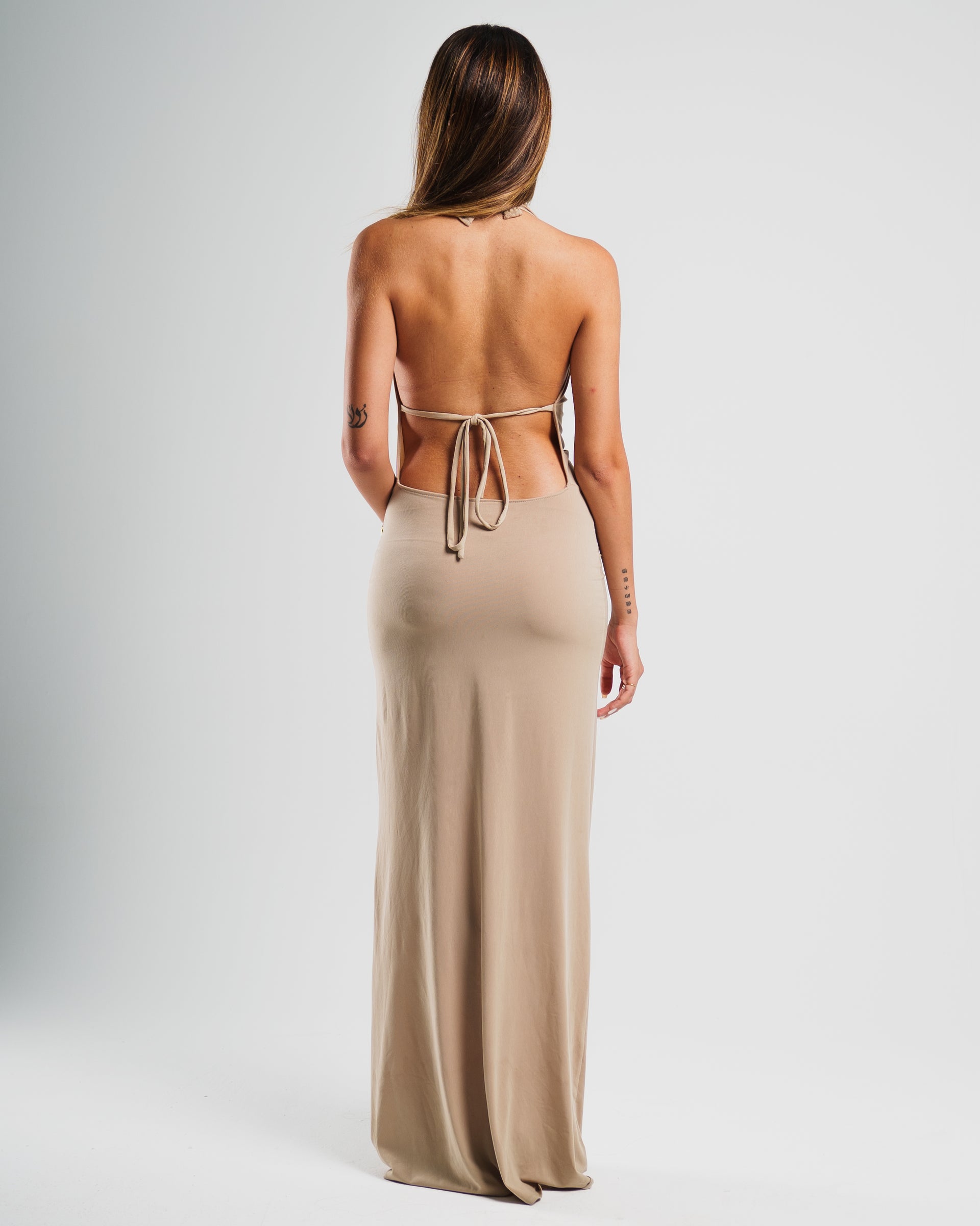 Unveil your elegance with the Aria Dress, a backless design that beautifully hugs your body and enhances your natural curves. Crafted from a stretchy, high-quality fabric, this dress ensures a sleek, form-fitting look, offering comfort and flexibility. The daring backless feature adds a touch of allure, making it perfect for any special occasion.
